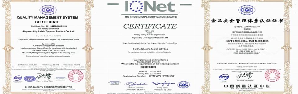 荊門市磊鑫石膏製品有限公司は石膏製品の研究、生産と販売を一體にして、一流の技術的な企業である。工場は荊門市東寶工業園に位置して、面積も25000平方メートルになります。當社は磊鑫、杰普生、凱氏蘇特という三つの商標をもって、特許も二つがある。主な製品は醫薬品グレード製品、食品グレード製品、農業グレード製品と建築材料などがある。経済的な価格と最高の品質で、當社は優秀な製造商として、世界中に多くの有名な企業と協力しています。インポートとエクスポートの権利を持って、當社の製品は韓國、日本、ロシア、ヨーロッパなどのマーケットにもよく販売されています。お客様に対して、神様のように正直します、お品質に対して、命のように頑張ります。當社と協力することはあなたの正しい選択で、共に進むことはわたしたちの同じ目標である。今後ともご指導ご支援を賜りますよう、どうぞよろしくお願い申し上げます。 ――中國最高の石膏(硫酸カルシウム)製造商になる ――CGC·磊鑫石膏